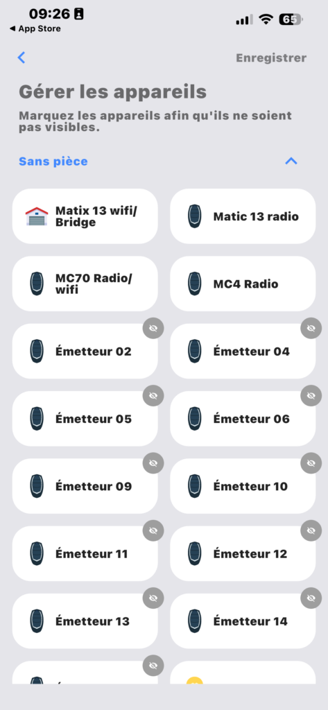 Cliquez sur Emetteur 01 si il est libre sinon Emetteur 02, l’œil barré devrait disparaitre.