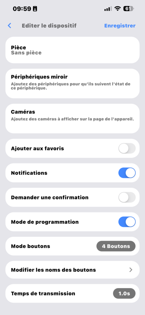 Revenez sur le crayon pour supprimer le mode de programmation, puis réenregistrer la configuration.