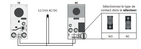 • Alimentation TX et RX (Émetteur et Récepteur) : 12/24V AC/DC
